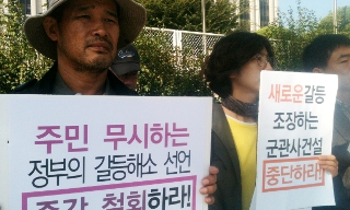 정부가 주민동의 없이 7년간 강행하고 있는 강정마을 해군기지 공사에 대해 일방적으로 ‘갈등해소’를 선언해 분노를 일으키고 있다. 소식을 듣고 서...