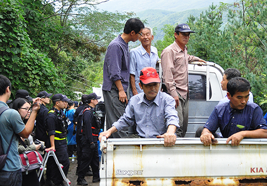 16일 오전 밀양 송전탑 84, 85, 86, 89번 건설현장 진입로에서 경찰은 네차례에 걸쳐 주민을 연행하거나 강제로 끌어냈고, 그 과정에서 ...