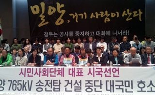 범 시민사회의 대표자들이 밀양 송전탑 건설 중단을 요구하며 대국민 호소 시국선언에 나섰다. 이들은 시국선언 이후 ‘밀양송전탑 서울대책회의’를 발...