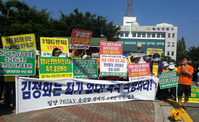 밀양경찰서가 26일 새벽, 송전탑 반대투쟁을 해온 동화전마을 대책위원장 김정회 씨를 긴급체포하자 주민과 대책위 등이 강하게 반발하고 나섰다.
