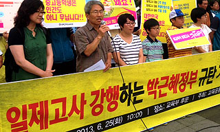 2013년 일제고사(국가수준 학업성취도평가)가 25일 시행된 가운데 교육운동연대가 같은 날 오전 서울 종로구 정부서울청사 앞에서 기자회견을 열고...