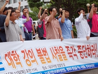 민교협, 전국교수노조, 학단협, 비정규교수노조 등 교수학술 4단체는 14일 교육부 앞에서 결의대회에 진행, 일방적 대학구조조정 폐기와 대학공공성...