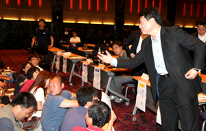 철도노조 조합원들과 시민사회단체 회원들이 ‘철도산업 발전방안 공개토론회’를 무산시켰다. 노조와 시민사회단체들은 오후 1시 30분에 토론회장 앞에...
