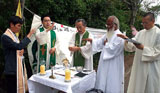 강정마을에 평화를 염원하며 천주교가 매일 11시 공사 기지 현장 정문에서 미사를 올리는 가운데 30일 오전 11시 35분경 경찰이 문정현 신부와...