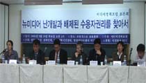 첫 발제를 맡은 문효선 방송기술인연합회 회장은 “‘뉴미디어 망의 무분별한 개발, 빈약한 콘텐츠’라는 현실에서 공적 서비스가 약탈적 자본의 ‘사적...