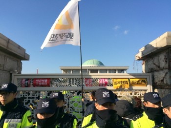 국회는 박근혜 대통령 탄핵 표결을 하루 앞두고 국민의 목소리를 모두 막았다. 약 5천 명의 시민은 오후 7시 여의도 산업은행 앞에서 ‘주권자 시...