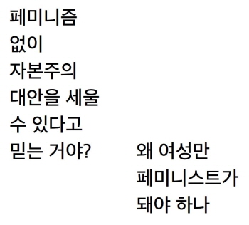자본주의 사회에서 빈곤과 노동이 이토록 성별화 되어 있는데, 페미니즘 없이 이 자본주의를 어떻게 뚫고 나갈 수 있을지 대안을 세울 수 있다고 정...