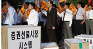 증권노동자들은 12일 국회 앞에서 집회를 갖고 "자통법(안)이 금융 빅뱅, 외국자본의 전면 진입을 위한 규제완화, 실제 내용은 선별허용과 다름없...
