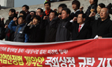 강기갑 민주노동당 의원, 조승수 진보신당 의원, 정동영 민주당 의원 등 야당 의원 40명으로 구성된 ‘한미FTA 전면 폐기를 위한 국회의원 비상...
