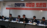 한미 자유무역협정이 발효되면 임금이나 고용, 공적 보험 등의 복지국가 건설을 불가능하게 한다는 주장이 21일 한미자유무역협정(한미FTA) 재검증...