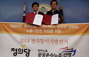 정의당-공공운수노조 6.4 지방선거 정책협약