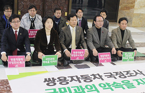 새누리당이 쌍용차 국정조사 실시를 반대해 새누리당과 민주통합당이 24일로 잠정 합의한 1월 임시국회가 결국 열리지 못하자, 진보정의당이 쌍용차 ...