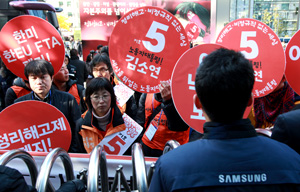 김소연 첫 선거운동, 삼성 본관에서 “탈법 재벌자산 몰수”[3]