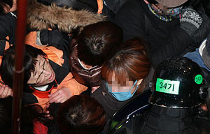 김종철 진보신당 직무대행 등 함께...삼성 경비용역들과 마찰 빚기도