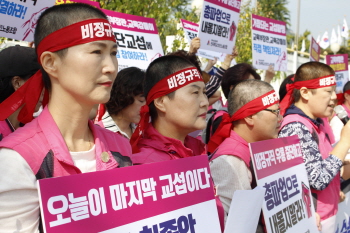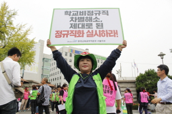 학교비정규직 노동자들이 정부의 임금삭감 시도 저지, 근속수당 인상을 위해 무기한 단식농성에 돌입했다. 학교비정규직연대회의(학교비정규직노조, 여성...