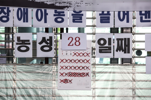 "남경필 나와라" 고공 단식농성 2일차, 전국 장애인 모여 집중 집회