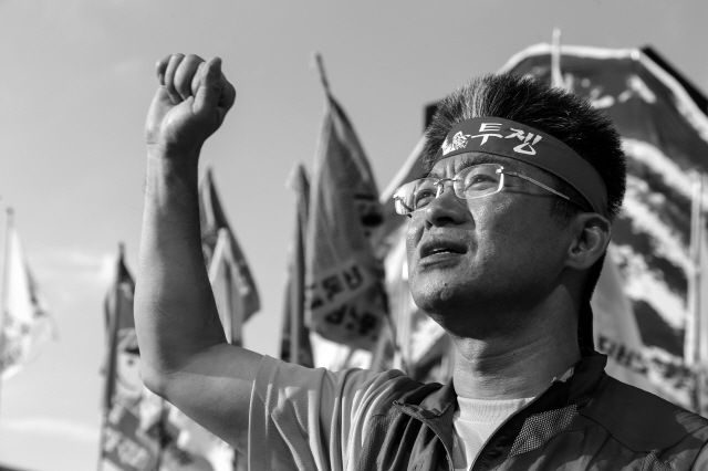 노조 조끼 위에 구호가 적힌 ‘몸 (대)자보’까지 걸치면 사람들은 어떻게 쳐다볼까. 노조 조직률이 10% 남짓이지만, 얼마 안 되는 노조마저 배...