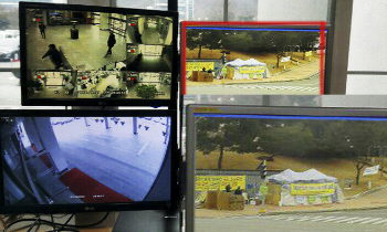 구미시가 CCTV로 시청 앞 아사히글라스노조 농성장을 표적 감시하고 있다는 의혹이 제기됐다.