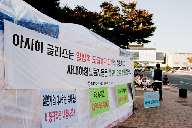 구미시가 대량해고 사태 해결을 요구하는 시청 앞 아사히사내하청노조 농성장에 대한 철거를 요구하고 나섰다. 구미시와 노동부 등이 참여한 가운데 열...