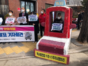 4.2 택시 희망버스 기획단은 15일 오전 효자동 치안센터 앞에서 기자회견을 열고 4.2 택시 희망버스 계획을 발표했다. 이들은 기자회견문을 통...