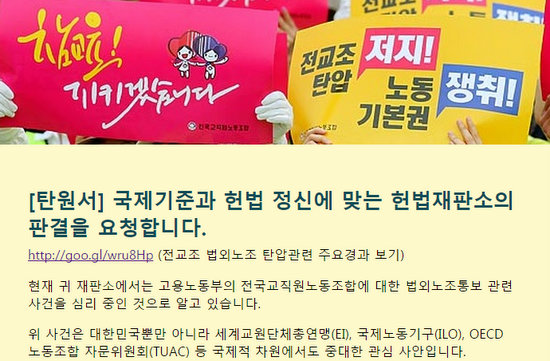 전교조에 대한 법외노조 여부를 가릴 헌법재판소의 판결이 ‘초읽기’에 들어간 것으로 알려진 가운데 이번 연휴기간에 시작한 ‘전교조 살리기’를 위한...