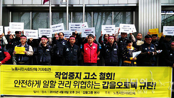 갑을오토텍 사측이 로봇 안전장치 오작동으로 작업 중지를 요청한 전국금속노조 갑을오토텍지회를 업무방해 혐의로 고소했다. 지회도 무고죄로 사측을 고...