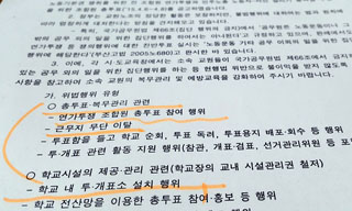 교육부가 전교조의 연가투쟁 찬반 조합원 총투표를 앞두고 학교 내 투표소 설치 및 조합원의 투표 활동까지 ‘위법’이라며 설치된 투표소 철거 등을 ...
