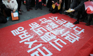 금속노조가 스타케미칼 해고자복직투쟁위원회(아래 해복투) 차광호 조합원 굴뚝농성 310일을 맞아 문제해결을 촉구하는 결의대회를 열었다.