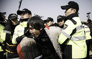 3차 오체투지는 SK-LG통신 비정규직과 스타케미칼 해고 문제를 중심에 놓고, 손쉬운 해고와 비정규직을 양산하는 재벌에 대한 항의의 의미로 진행...