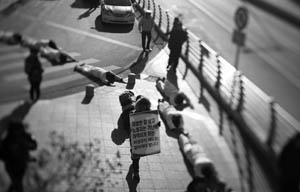 2014년 12월 26일, 기륭전자 노동자들이 ‘비정규직법 완전 폐기’를 요구하며 청와대로 향하던 오체투지 마지막 날. 차가운 바닥에 온 몸을 ...
