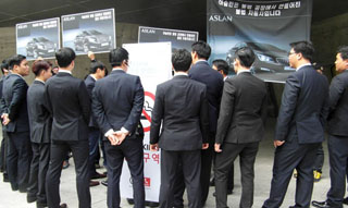 현대차는 30일 오전 11시, 서울 동대문 디자인플라자에서 고급 대형 세단인 신차 ‘아슬란’ 출시 행사를 열었다. 이날 행사장에 방문한 비정규직...