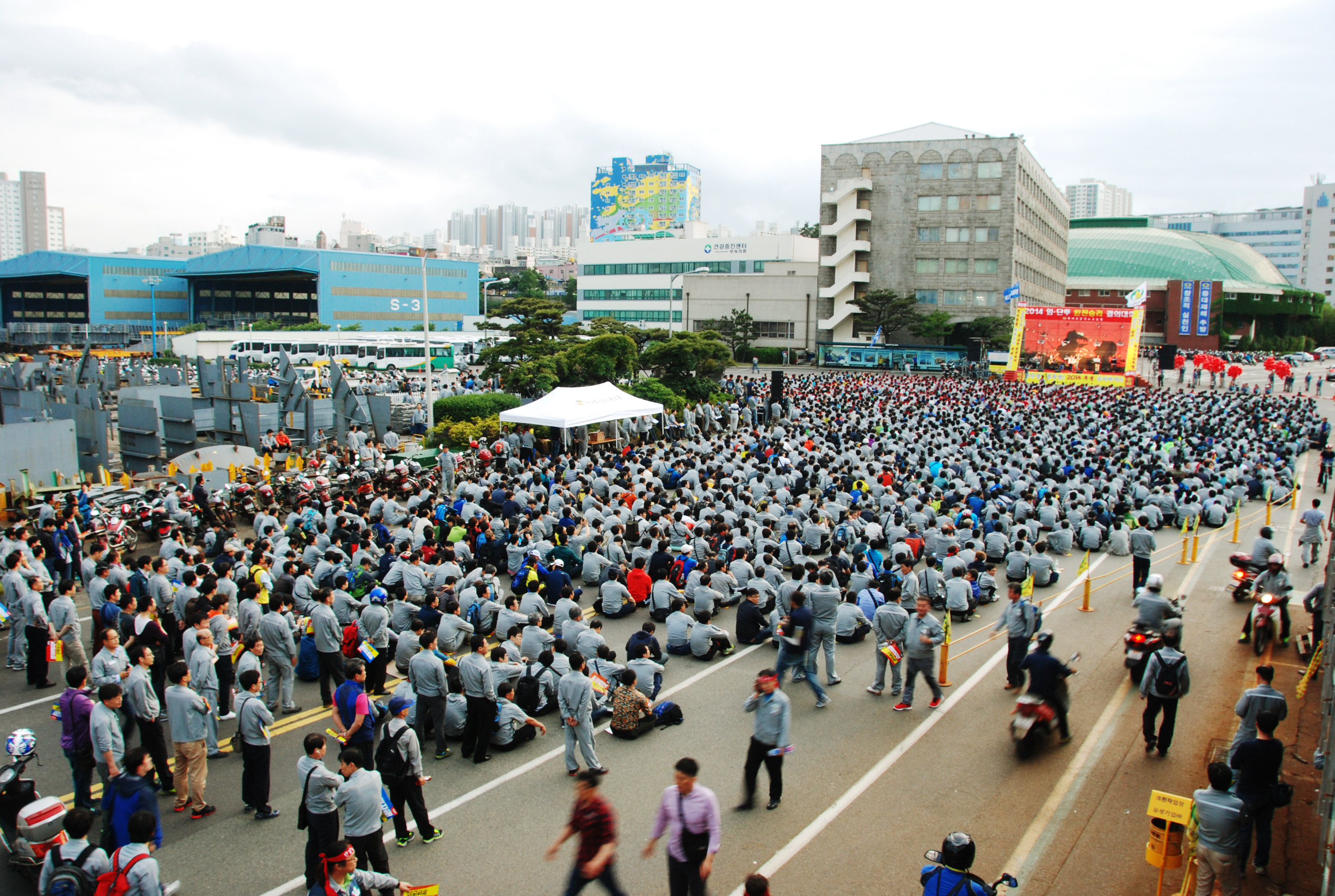지난 22일 재적 조합원 56% 찬성으로 파업을 찬성 가결한 현대중공업 노조는 28일까지 회사와 집중교섭을 재개했다.