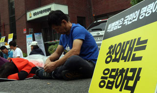 세월호 참사 희생자/실종자/생존자 가족들이 22일 서울 종로구 청운동주민센터 앞에서 박근혜 대통령에게 항의서한을 전달하고 답변을 촉구하는 연좌농...
