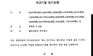 현대자동차 소송대리인인 김앤장 법률사무소는 선고 하루 전인 20일, 재판부에 ‘선고기일 연기신청서’를 제출했다. 이 자료에는 지난 18일, 현대...