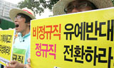 이명박 정권의 비정규직 대책은 비정규직이라는 신분의 벽을 고착화시키고, 차별을 심화시킨다. 정규직은 무기계약직을, 무기계약직은 비정규직을, 비정...