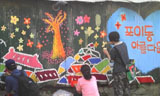 어둠이 깔리고 가로등 불빛을 받은 그림 아래에서 포이동266번지 사람들은 이야기 한다. 누가 뭐래도, 잿더미 위에서라도, 여기에서 행복하게 살고...