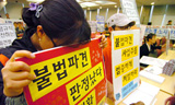 비정규직노동자들이 “대법원에서 불법파견 판정을 했는데 정규직되는 길이 이리도 어려우냐”며, 한탄하며 울고 있다. 현대자동차는 더 이상 그들의 눈...