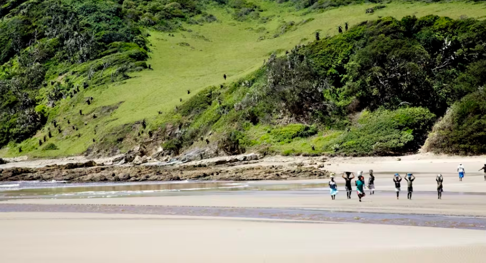 썰물 때 와일드 코스트(Wild Coast) 해변에서 굴을 채취하는 사람들. 출처: 폴그레그(PaulGregg)