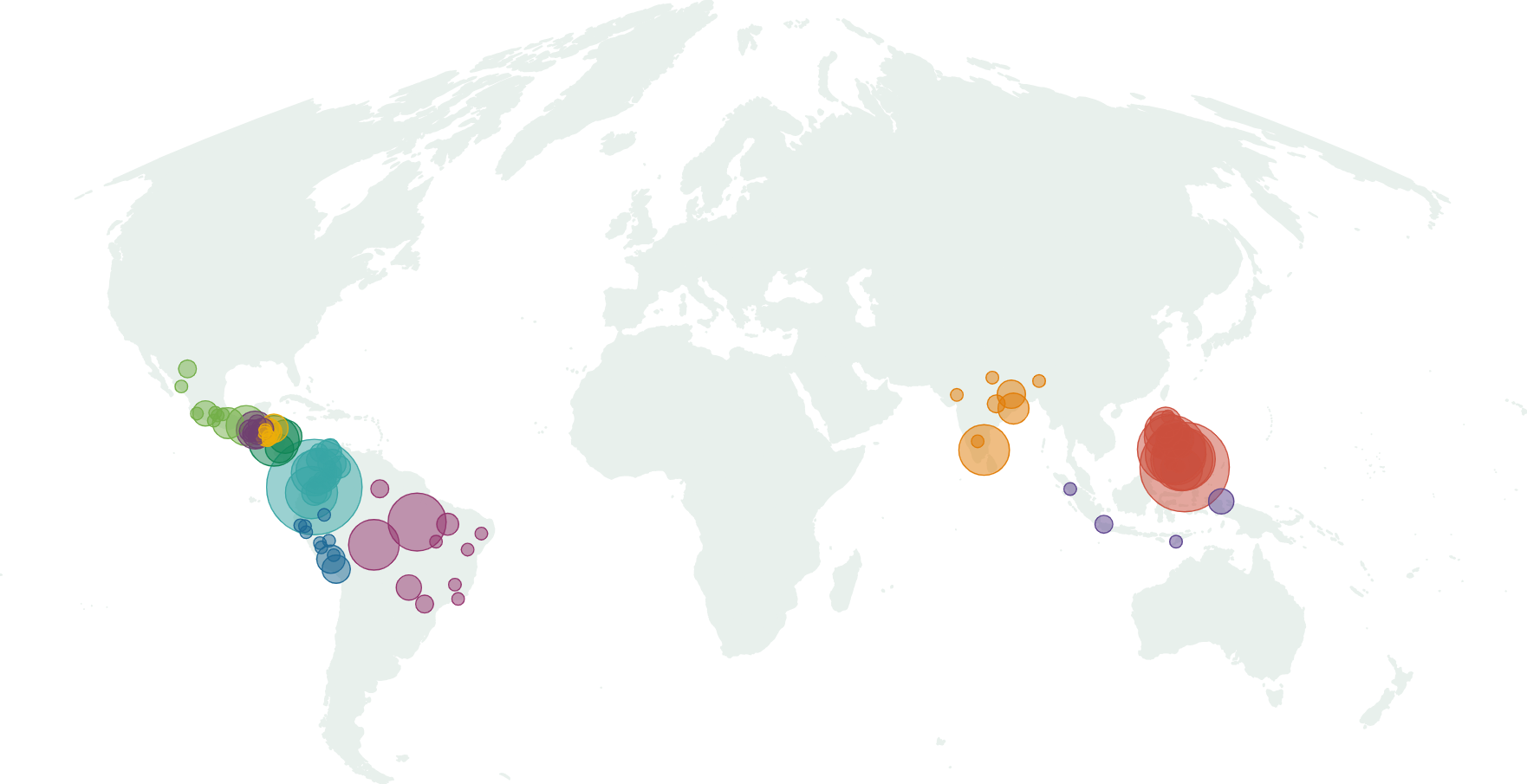 MURDER HOTSPOTS: Extrajudicial killings of environmental defenders, 2014-2024 . 출처 : FOR MORE SEE IN THESE TIMES’ DATABASE OF INCIDENTS.