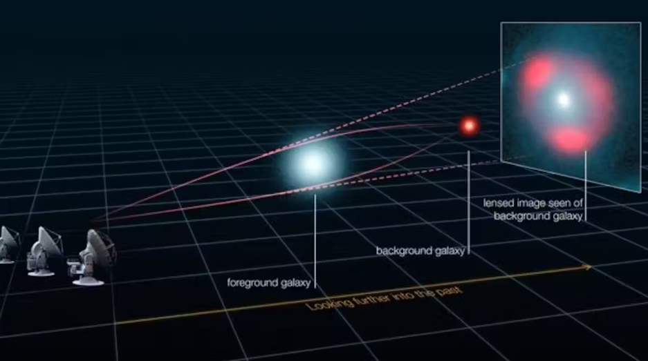 이 현상은 중력 렌즈 효과라고 불리며, 아인슈타인의 일반 상대성 이론에서 유래된 효과이다. 광학에서 이와 동일한 과정은 렌즈를 통해 물체를 볼 때 그 이미지가 왜곡되는 현상과 유사하다.