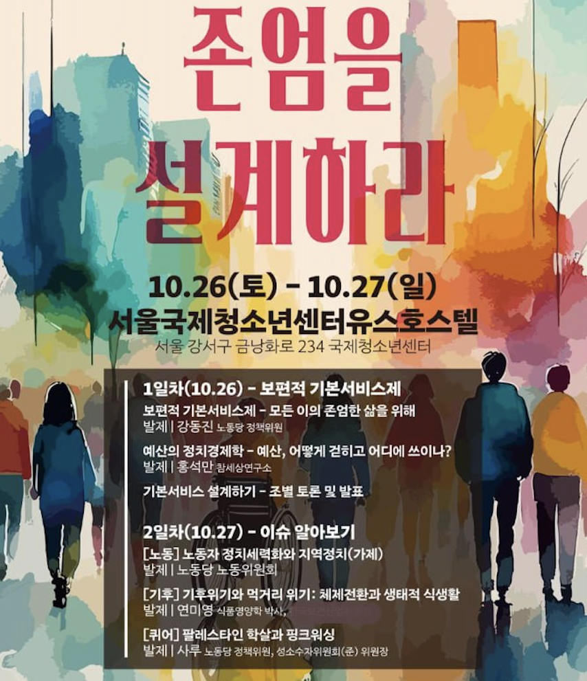 모두의 '존엄'을 위한 '사회주의' 운동의 대안은 무엇인가? 노동당이 10월 26일부터 이틀 동안 서울 국제청소년 유스호스텔에서 '2024 사회주의대회'를 연다. 이번 대회는 '존엄을 설계하라'라는 슬로건을 걸고, 모든 이의 존엄한 삶을 위한 '보편적 기본 서비스 운동'의 경로를 모색한다.