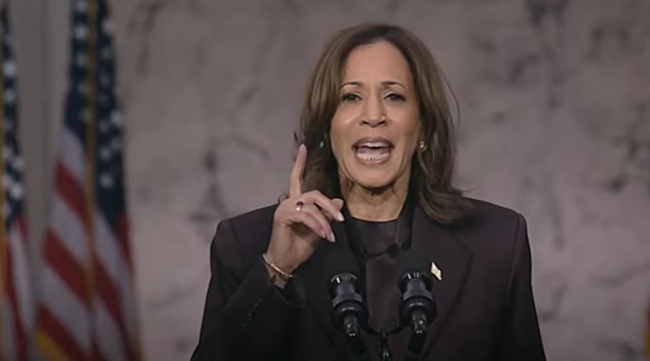 지난 11월 5일, 카멀라 해리스 민주당 대통령 후보가 하워드대학에서 대선 패배 승복 연설을 했다. 출처: 현장 생중계 화면 갈무리