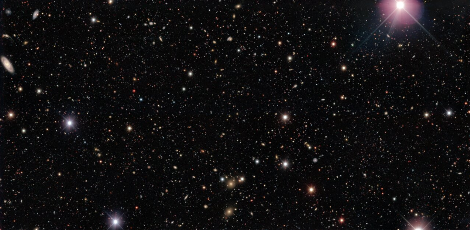 암흑 에너지 조사(DES, Dark Energy Survey)의 심우주 관측(Field Deep)의 이미지다. 이미지에 보이는 대부분의 천체는 멀리 있는 은하들이다. 출처: DES 협력단/NOIRLab/NSF/AURA/M. Zamani, CC BY-NC