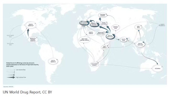 헤로인의 밀매 경로를 추적해 보면, 마약 공급이 국제적 네트워크를 통해 이뤄지며, 그 과정에서 수많은 공동체가 영향을 받는다는 사실이 드러난다. 아프가니스탄의 농민들, 국경 통과를 위해 뇌물을 받는 관리들, 최종적으로 마약을 투약하거나 흡연하는 사용자들, 이들 모두가 전 세계적인 공급망의 일부다.