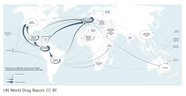 코카인 생산량이 사상 최고 수준에 도달했으며, 라틴아메리카에서의 생산 증가와 함께 유럽, 아프리카, 아시아에서의 소비 및 시장 확장이 이루어지고 있다.