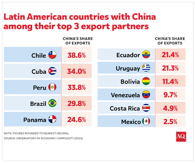 우리는 2021년 여름 이후 여러 차례의 분석을 통해미국의 주요 전략적 경쟁국인 중국이 지난 30년 동안 단순히 미국의 뒷마당에 발을 들여놓은 것이 아니라경제적 패권 경쟁에서 우위를 점하기 시작했다는 점을 지적해왔다중국은 이미 남미 최대 무역 파트너이며최근 페루 찬카이(Chancay)에 개항한 중국 자금과 통제 하에 있는 초대형 항만 사례에서 볼 수 있듯이일대일로 구상이 중국의 경제적 입지를 더욱 공고히 할 것으로 보인다.