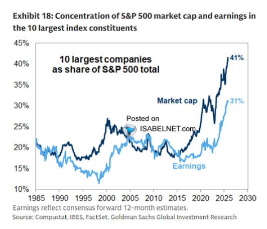 S&P 500 시가총액 및 수익의 상위 10대 기업 집중도, 상위 10대 기업이 S&P 500 전체에서 차지하는 비중