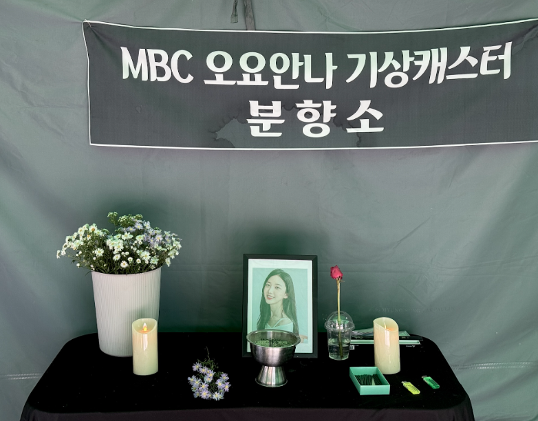 서울 상암동 MBC 사옥 앞, 고 오요안나 기상캐스터 분향소. 출처: 참세상 자료